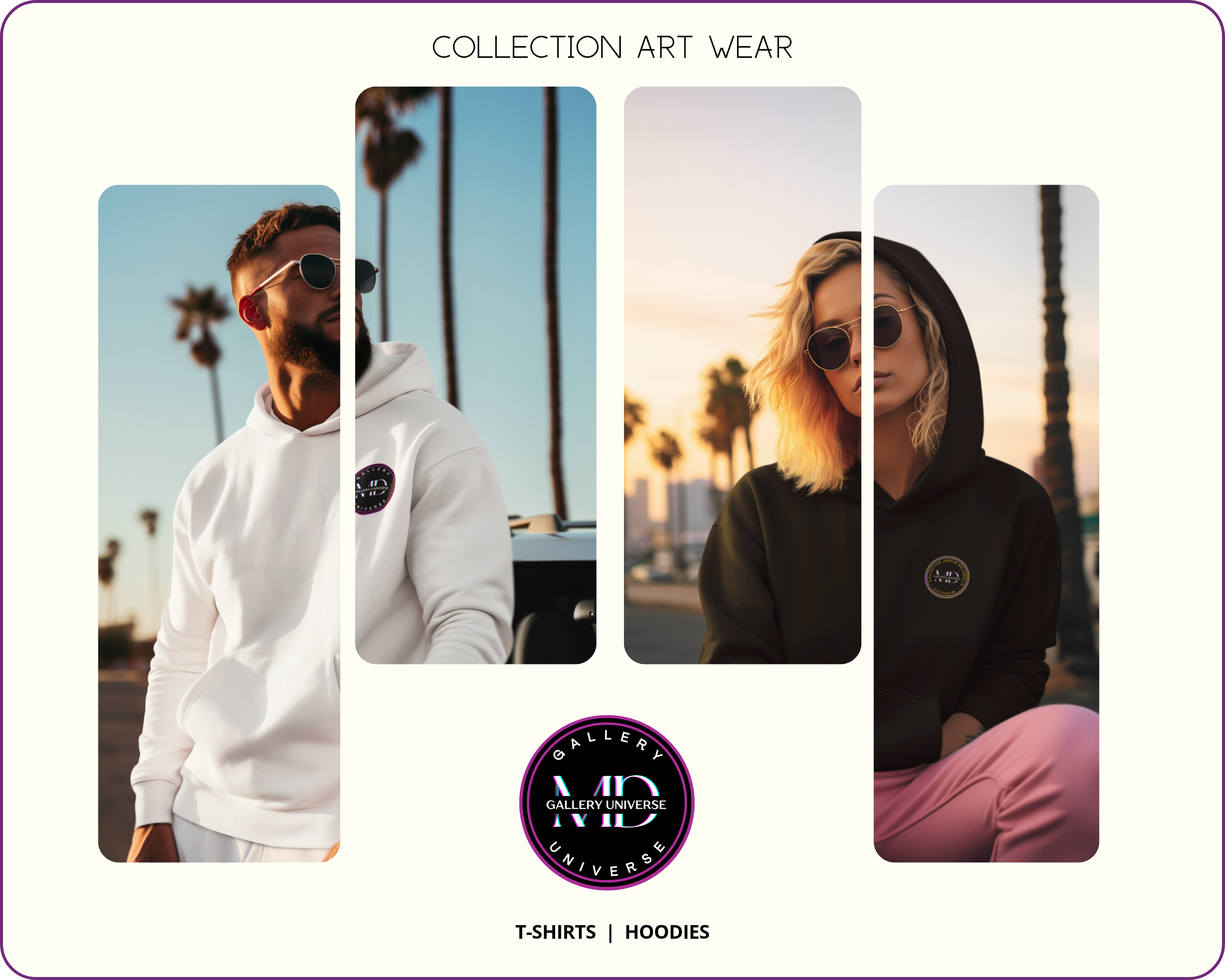 Designs artistiques exclusifs : Les vêtements arborent les imprimés captivants reprenant les Affiches Galerie, tirés de l'univers numérique de MD Gallery Universe.